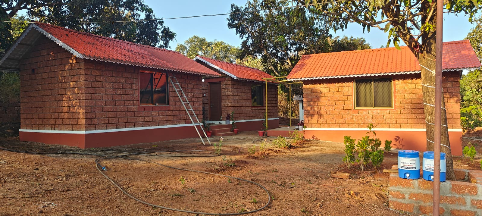 This traditional laterite built 200 sq ft. cottage is comfortable with king-size bed, coffee table and 2 chairs. Ideal for couple but additional mattress can be arranged for kids.